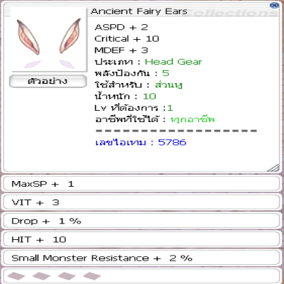 ระบบ MONSTER DROP ITEMสุ่ม OPTION 5 แถวรายการที่สุ่มได้ ประเภทสวมใส่ช่องที่ 1HP 1 - 100 หน่วย