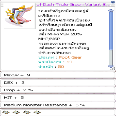 ระบบ MONSTER DROP ITEMสุ่ม OPTION 5 แถวรายการที่สุ่มได้ ประเภทสวมใส่ช่องที่ 1HP 1 - 100 หน่วย