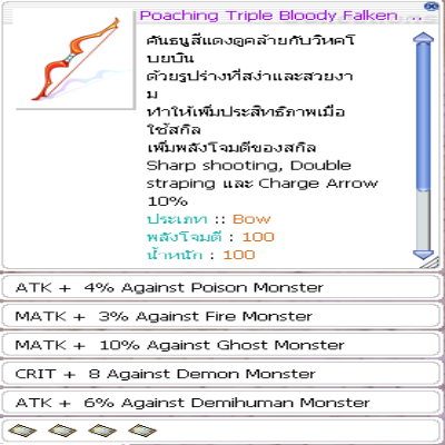 เพิ่ม CRITICAL เมื่อโจมตี มอนประเภทกึ่งมนุษย์ (ไม่รวมผู้เล่น) 1 - 10 %